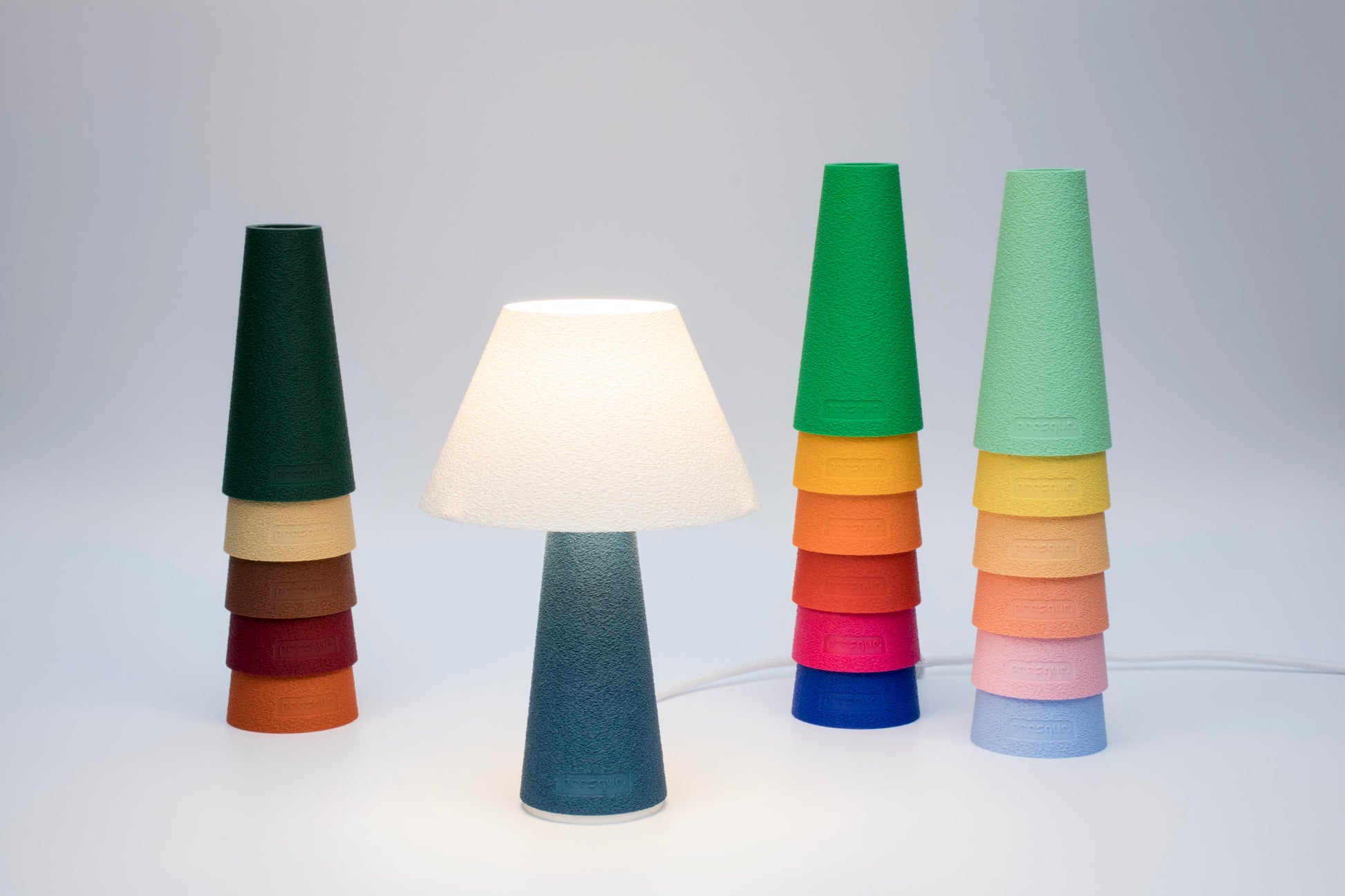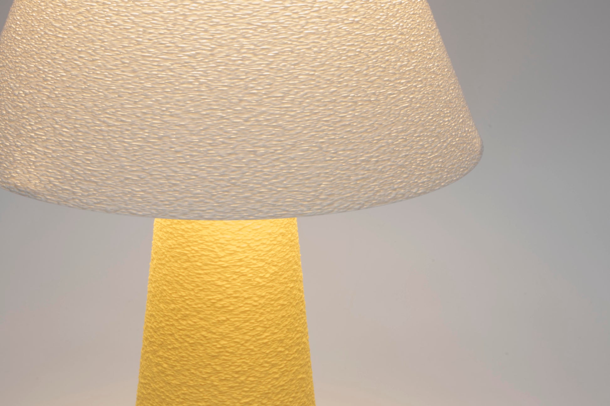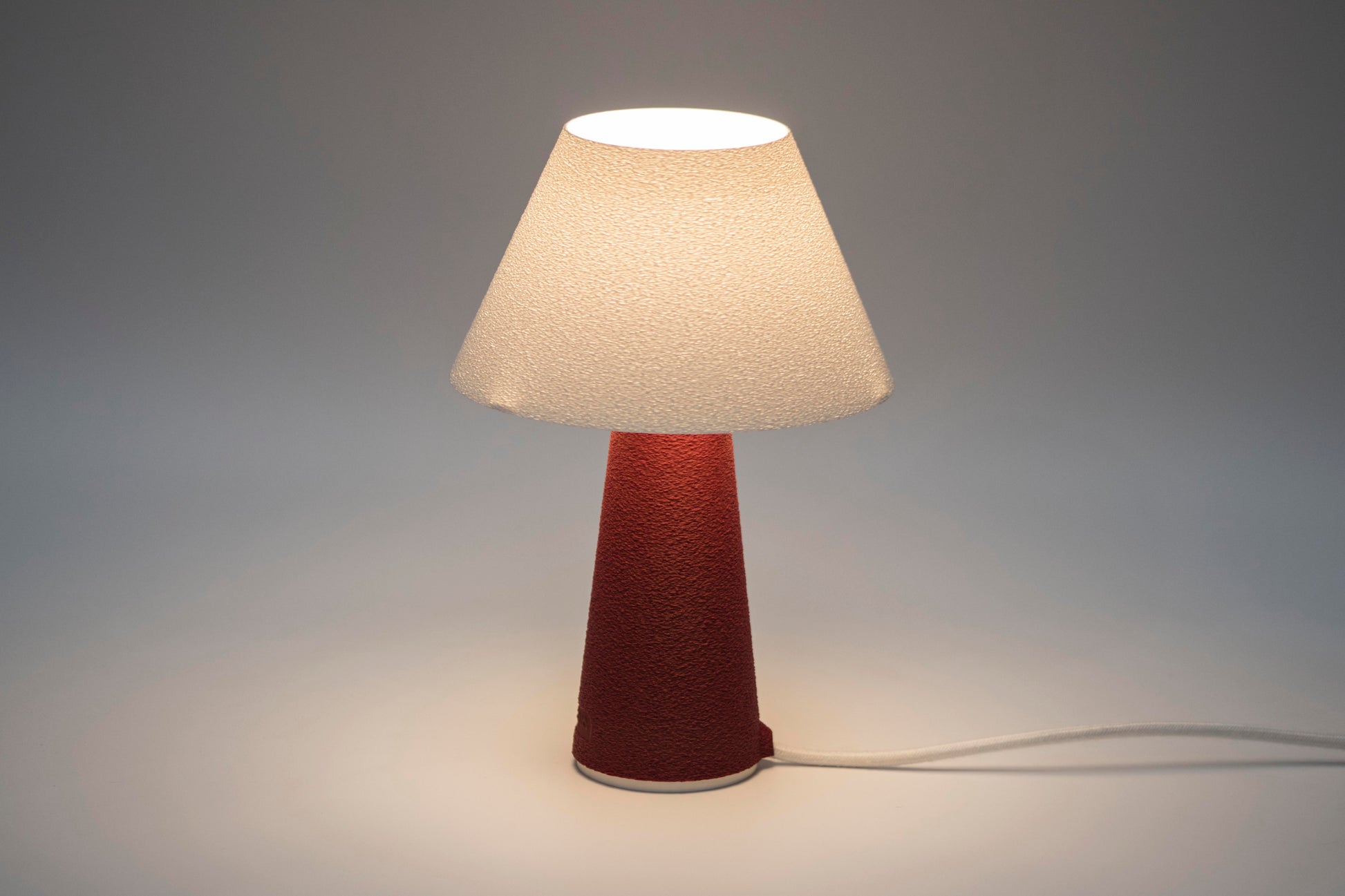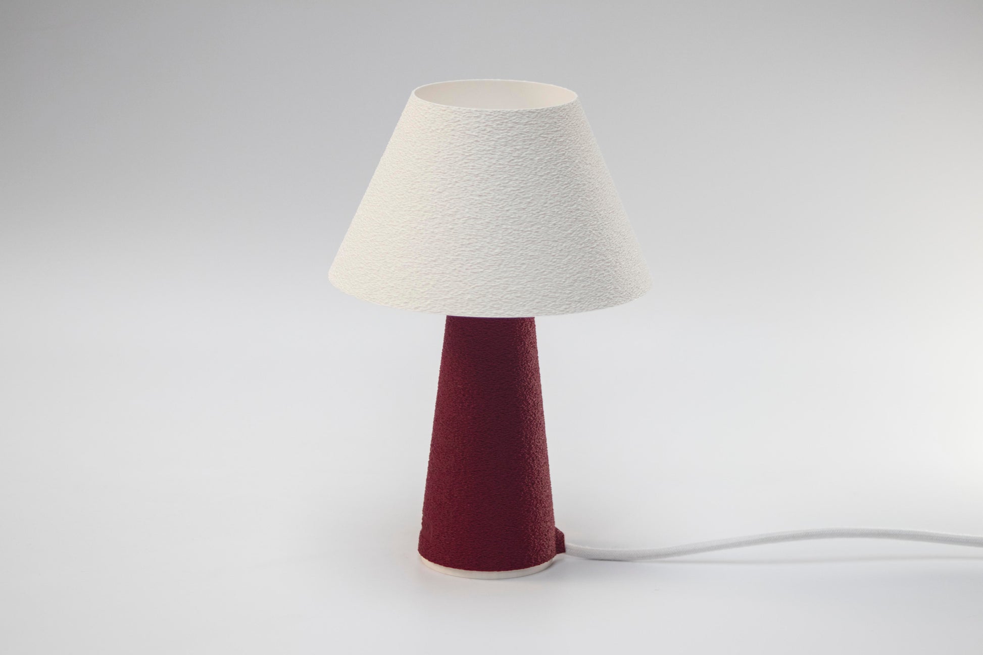 Une lampe aux courbes simples qui met son procédé de fabrication, l'impression 3D, au centre du sujet. Encore. Une texture nouvelle, agréable à la vue et au toucher, directement induite par ce procédé.