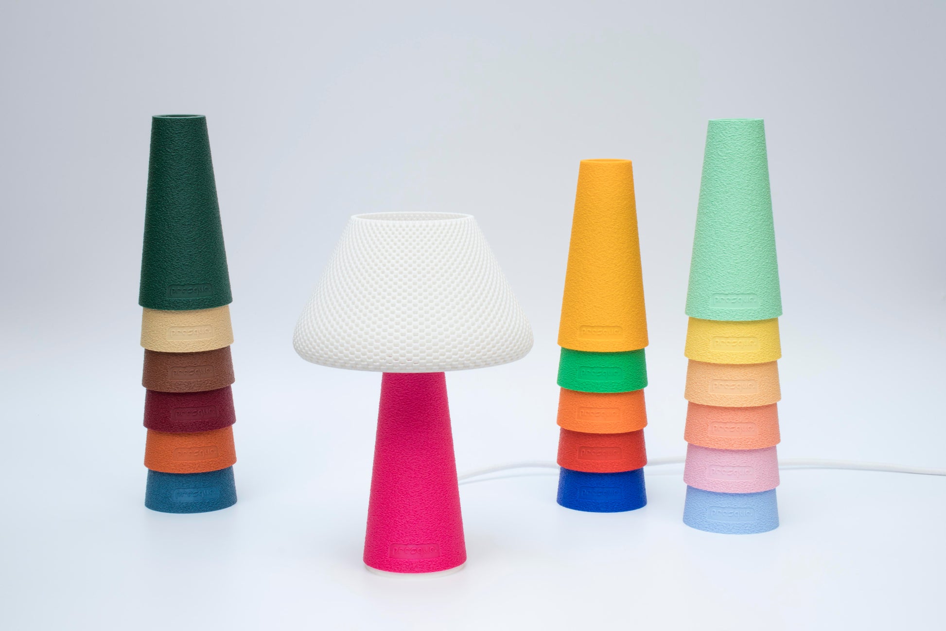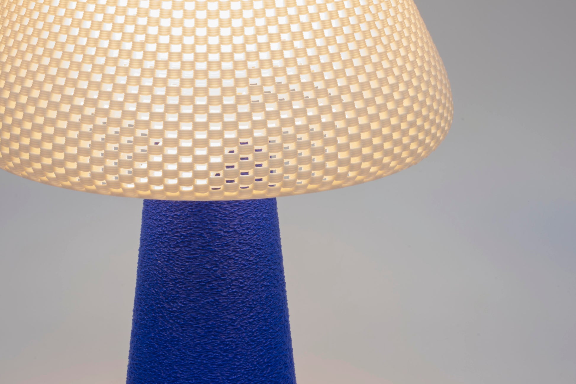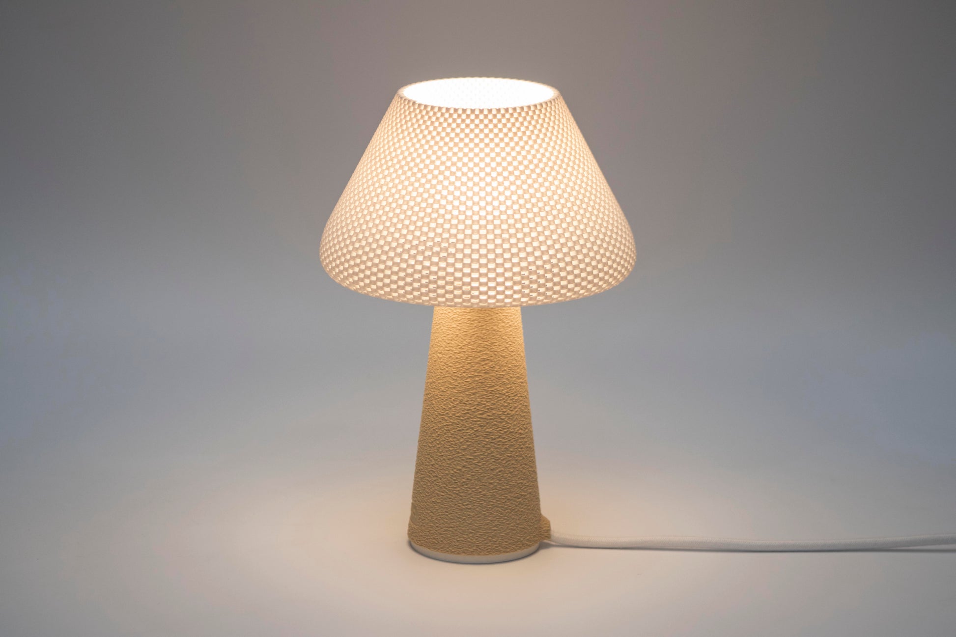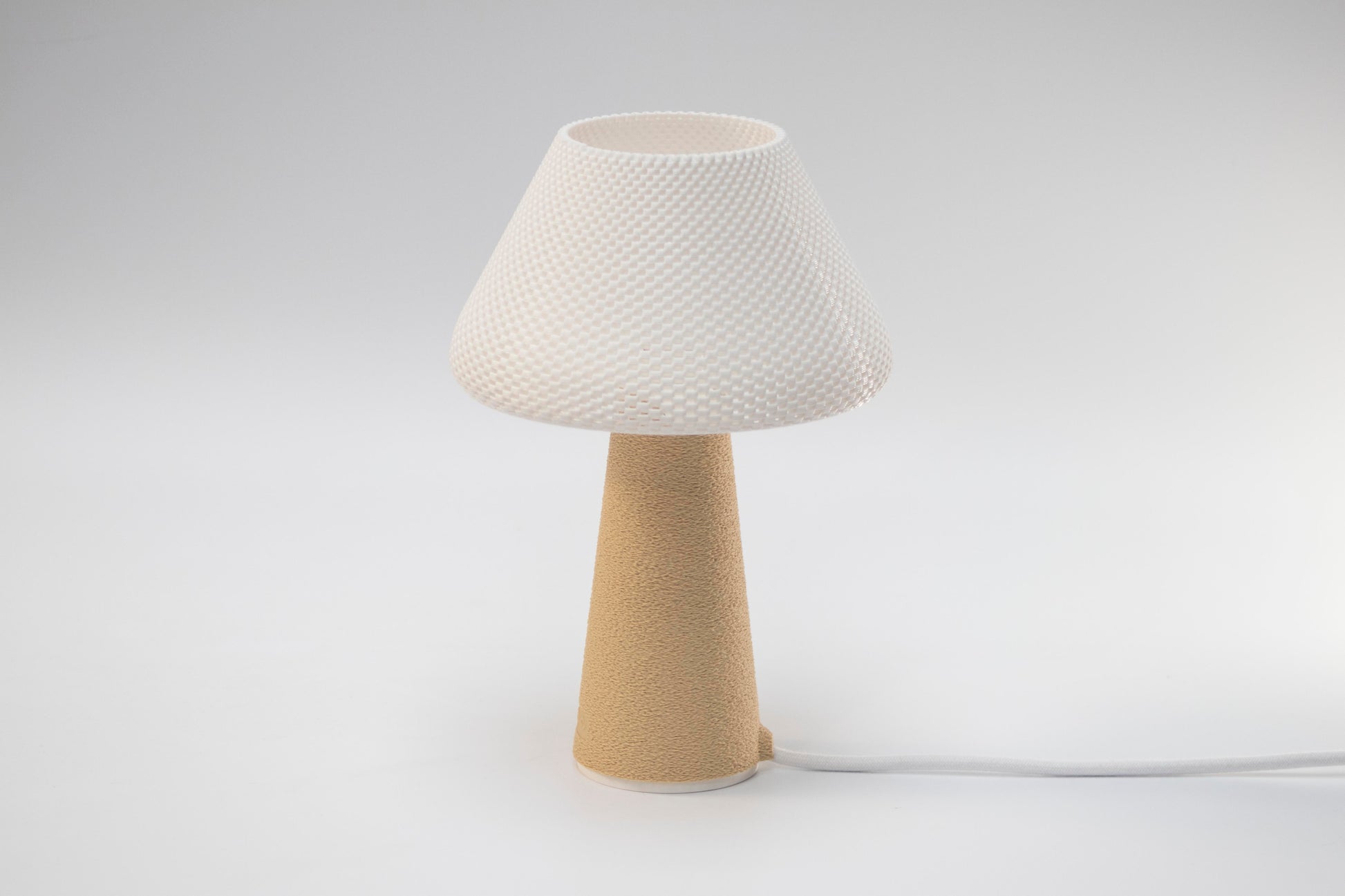 Une lampe aux courbes simples qui met son procédé de fabrication, l'impression 3D, au centre du sujet. Encore. Une texture nouvelle, agréable à la vue et au toucher, directement induite par ce procédé.